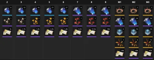 В таблице ниже представлены все материалы, необходимые для Повышения героини, а также прокачки ее талантов и навыков. Ознакомиться с расположением материалов можно на интерактивной карте Талоса II.