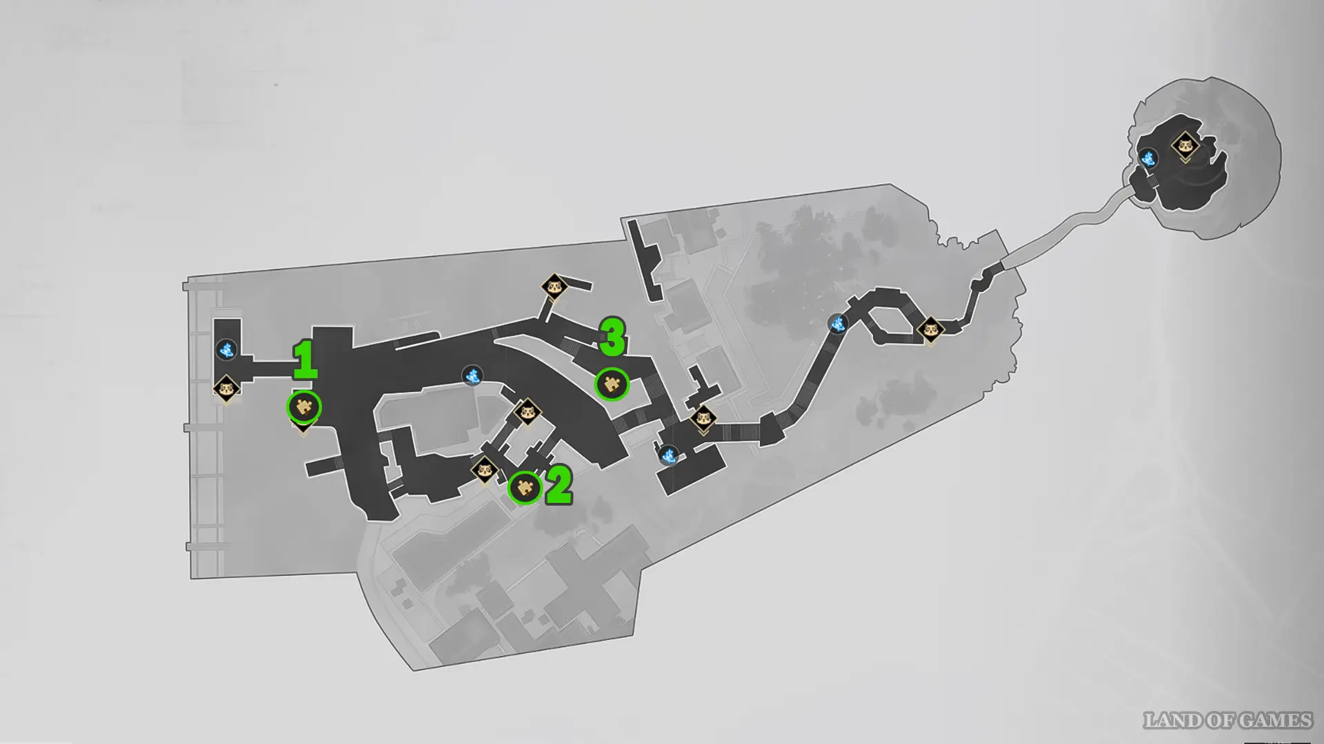 В черте Города Морской можно отыскать 3 испытания – их точное местоположение мы отметили на карте выше.