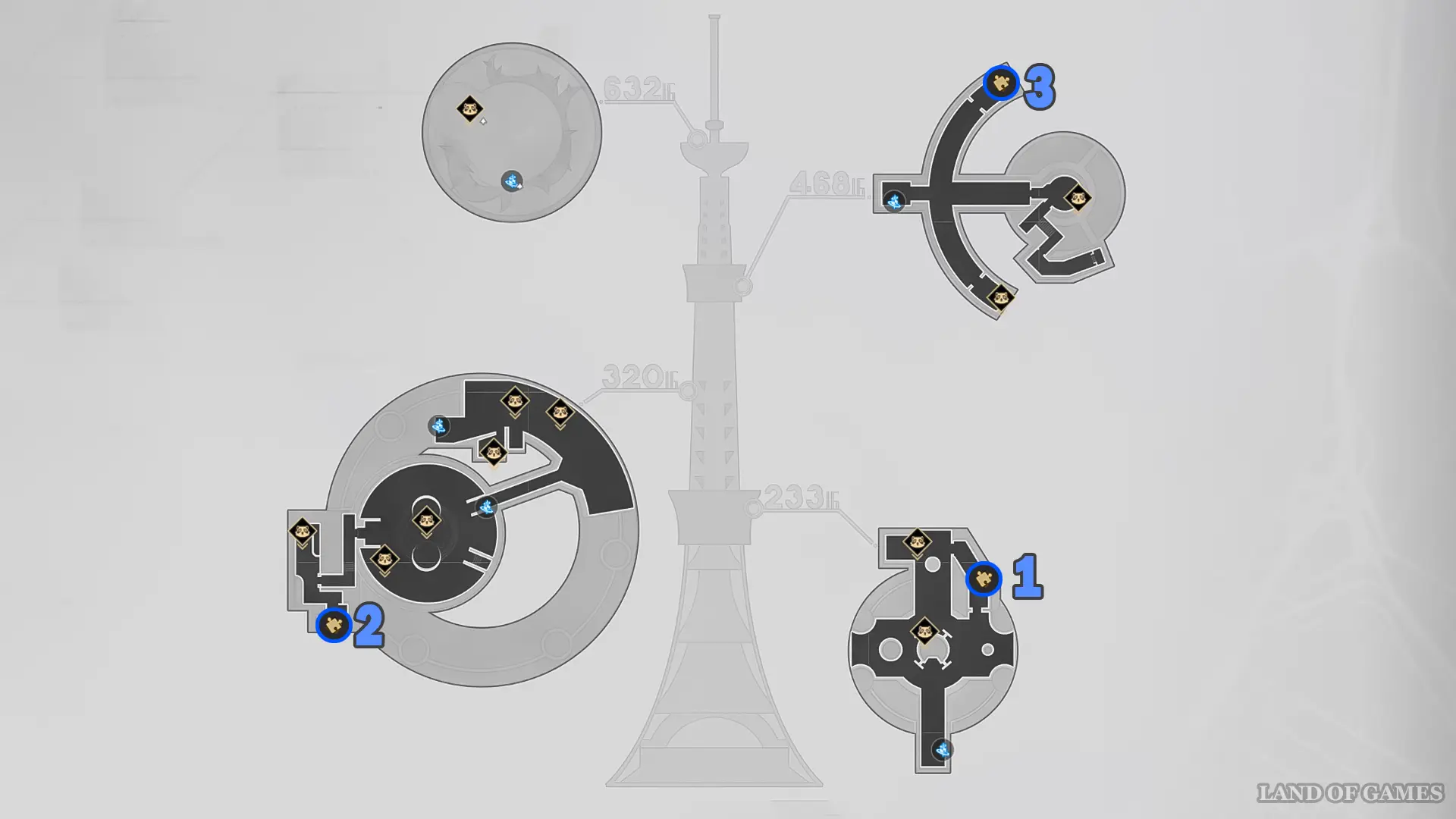 Исследуя Морскую телебашню, вы обнаружите 3 «Двухмерных поворота». Чтобы вам было проще их отыскать, мы указали все точки на карте выше.
