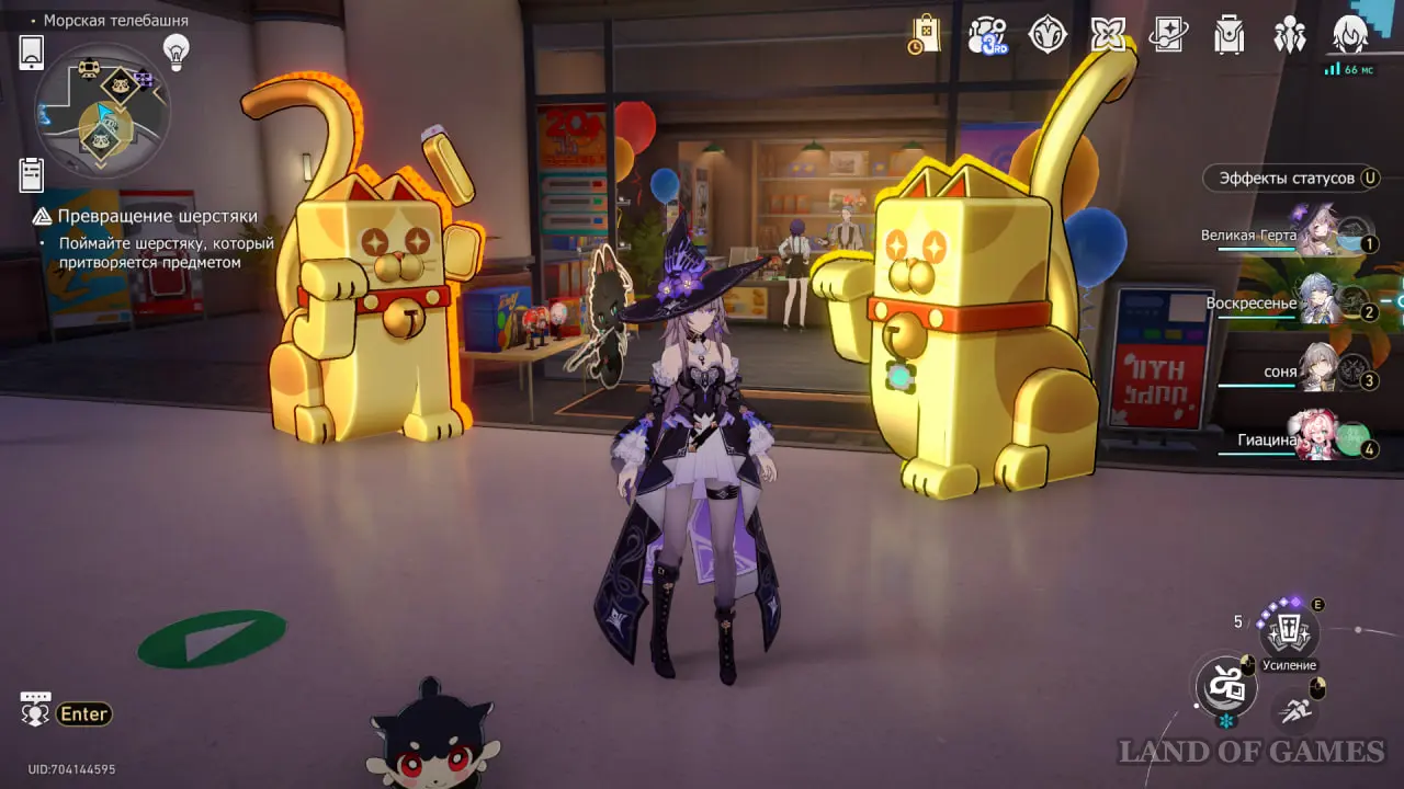 От «Входа в студию» идите вперед и заверните в магазинчик справа. Поболтайте с шерстякой. Когда он исчезнет, выйдите из магазина и ударьте по золотой фигурке кота справа от входа.