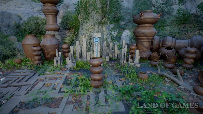 Загадка с глиняными сосудами находится на севере от города Деменисс — чуть выше озера с двумя водопадами. На карте нерешенная головоломка обозначается как место с таинственной энергией.