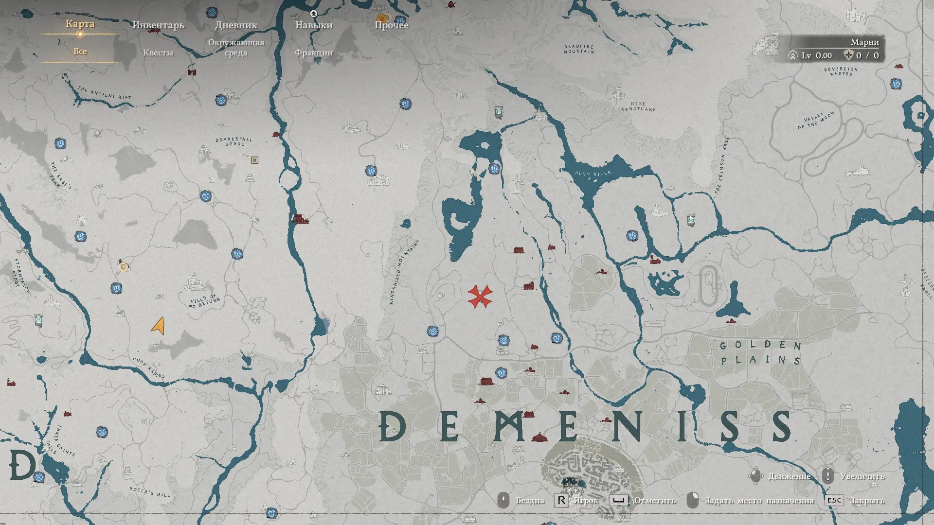 Руины Золотых равнин находятся к востоку от гор Кингшилд в регионе Деменисс. Точная точка скрыта в лесистой зоне, поэтому ориентируйтесь на отметку в виде знака вопроса на карте.