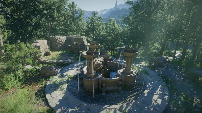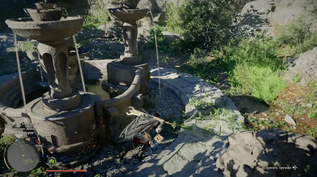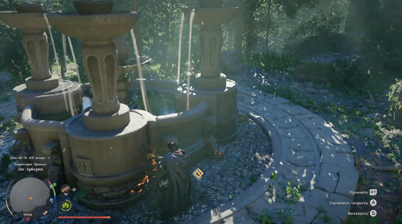 В густых зарослях Арбории в Crimson Desert легко пройти мимо древних руин, приняв их за декоративный элемент ландшафта. Однако перед вами полноценное испытание, завязанное на взаимодействии с окружением, чтобы получить награду, необходимо заставить все статуи работать и направить воду в одну точку.