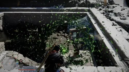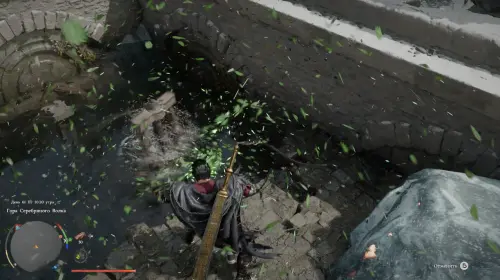Сразу после разрушения льда станет доступен первый механизм. Он находится прямо перед лестницей. Используйте способность «Завеса природы», чтобы взаимодействовать с устройством. Удерживайте навык до тех пор, пока вода не начнет уходить.