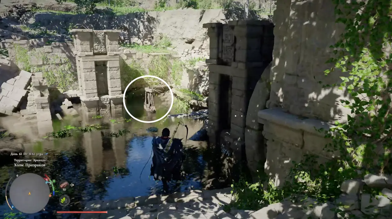 Добравшись до места, вы обнаружите затопленные руины с водой, скрывающей основной механизм.