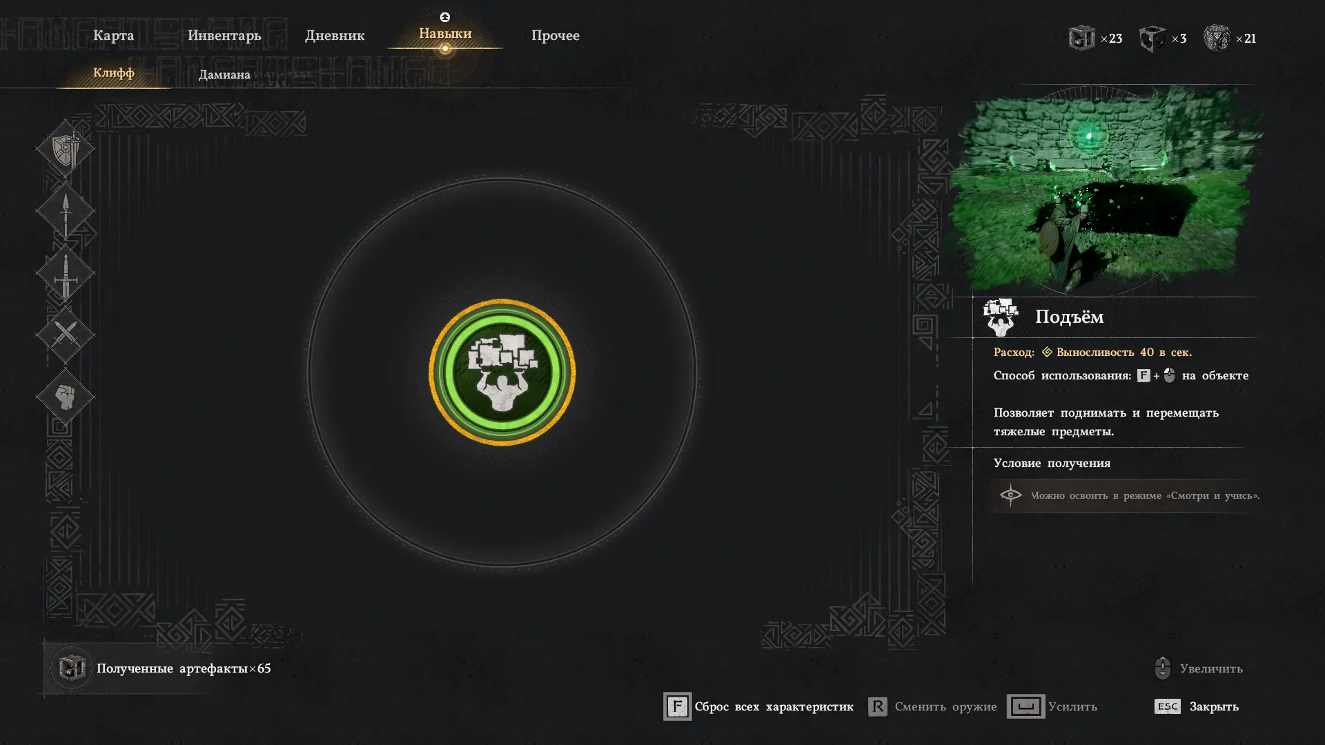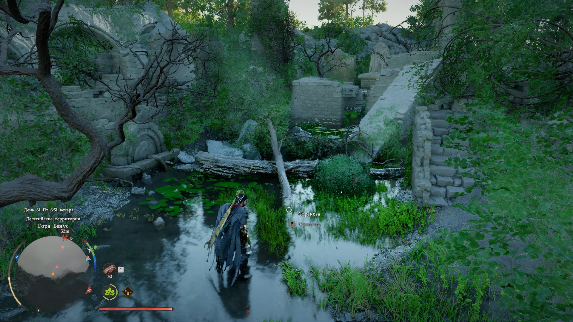 Однако, чтобы было удобно двигаться к главной статуи, нужно также убрать мешающие поваленные деревья и упавшие колонны, для этого используйте навык «Подъем».