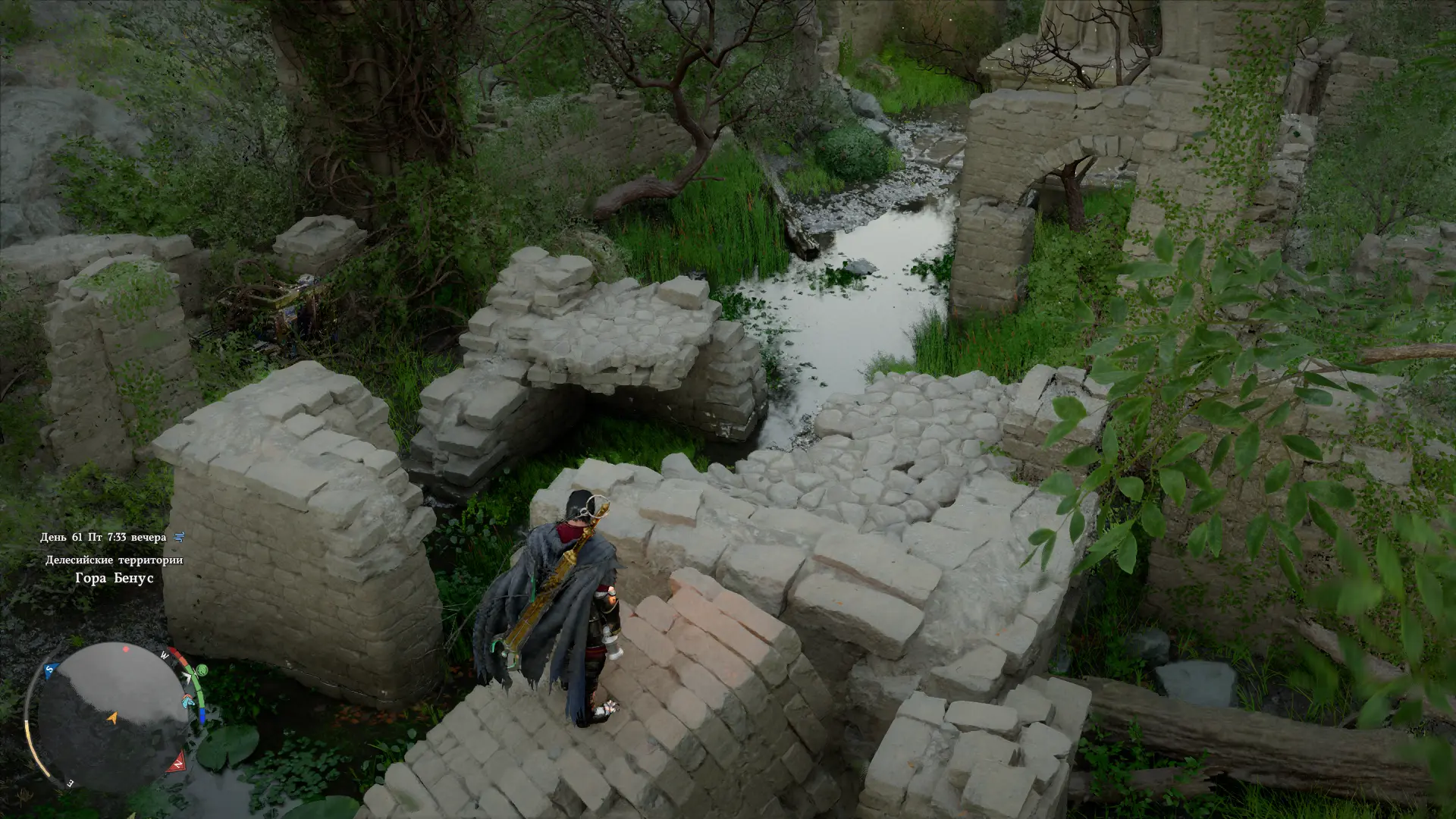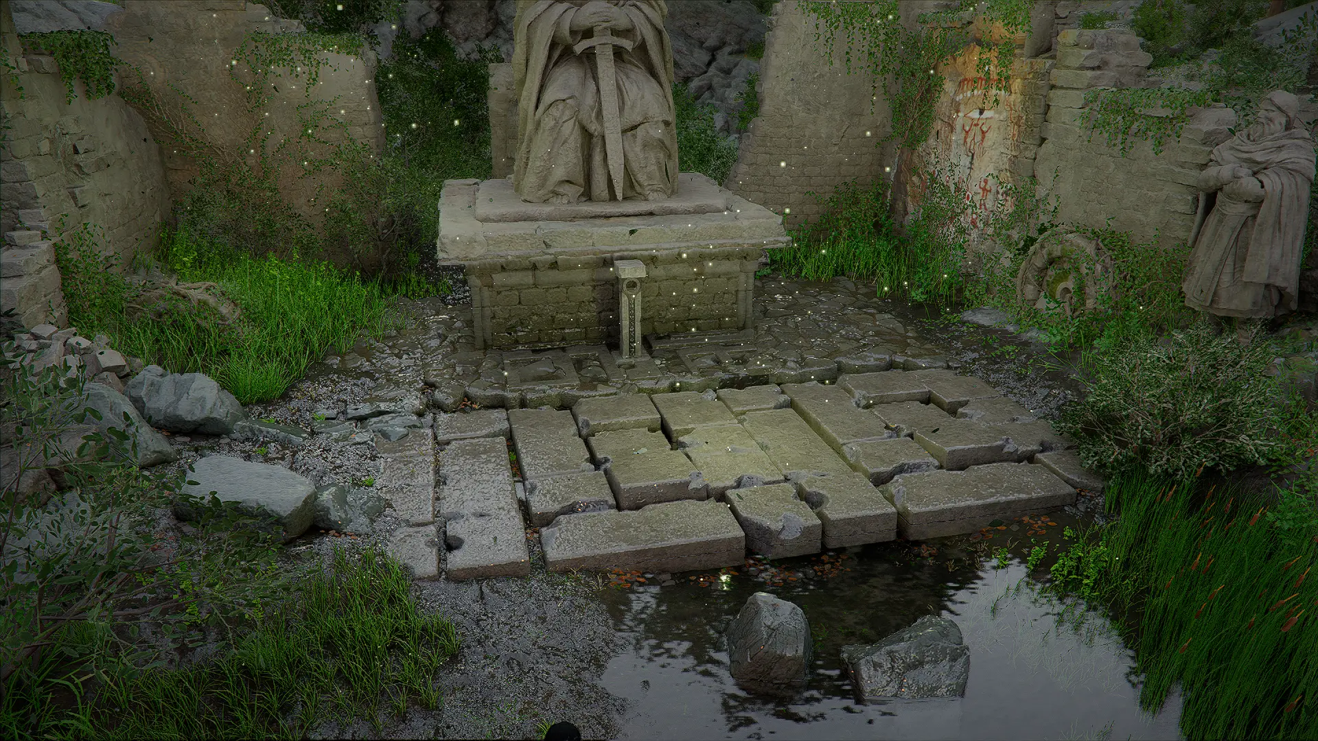 Оказавшись на месте, вы увидите площадку со статуей, к которой ведет путь через разрушенные участки руин.