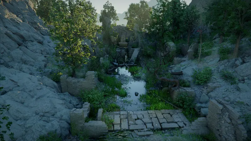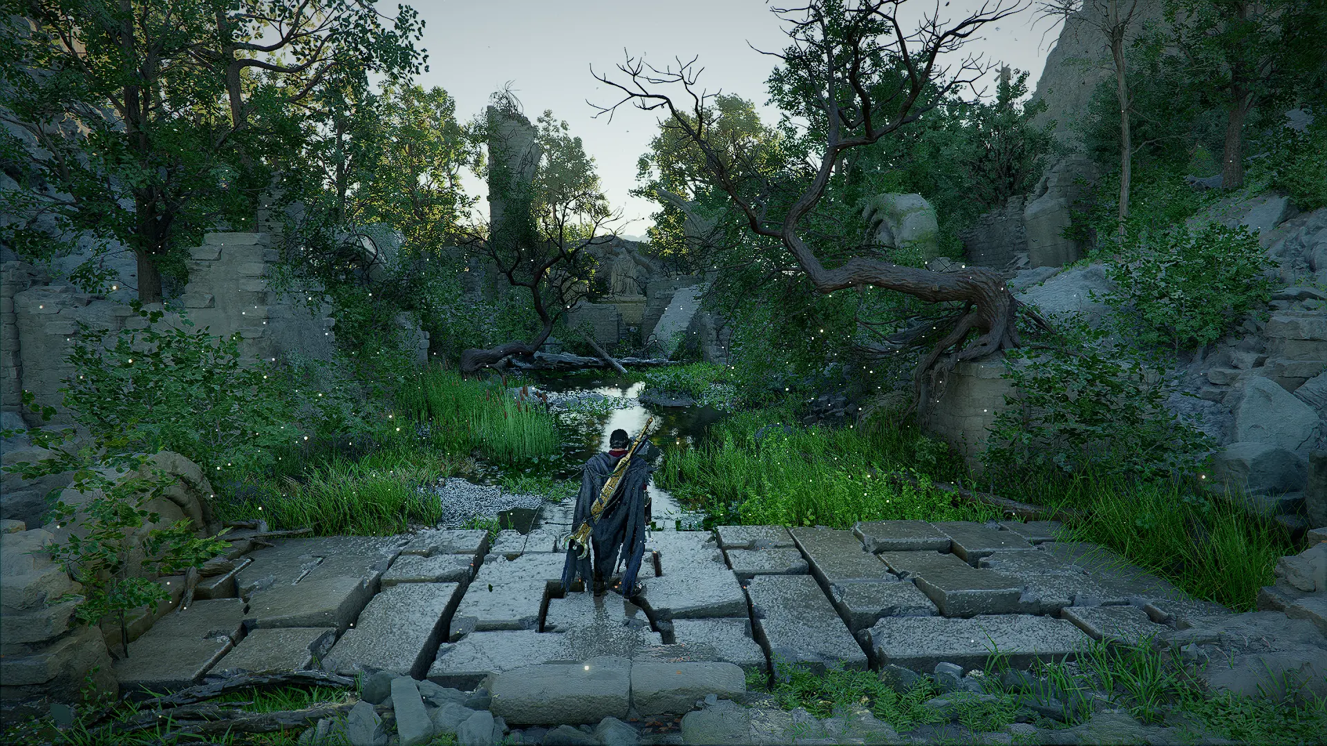 В самом начале, чтобы пройти вглубь руин вам необходимо использовать огонь или навык «Отражение света», с их помощью вы быстро разберетесь с зарослями, которые не дают пройти.