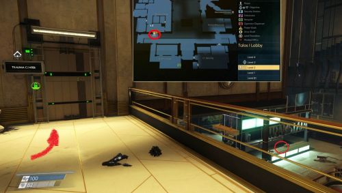 Травматологический центр находится на втором уровне, в западной части основного холла. Чтобы попасть в него вам потребуется карточка-ключ. Ближайшая из них расположена на прилавке к востоку от двери в вышеуказанный комплекс (спуститесь на первый уровень). Вы заметите его, находясь уже у входа – над ним расположен большой знак Транстар.