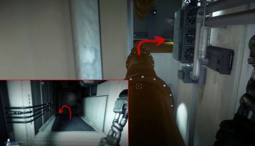 - Как найти: Если вы хотите незаметно проникнуть в механический цех, то вам стоит воспользоваться замечательным люком для технического персонала, который позволит вам избежать использования главной двери. Идите на верхний этаж и пройдите по тротуару атриума. Войдите в медицинский отсек и вы увидите люк в углу.