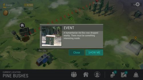Сброс припасов с воздуха является случайным событием, которое может возникнуть в любое время, однако чаще всего оно происходит, когда у персонажа недостаточно энергии для перемещения по карте.