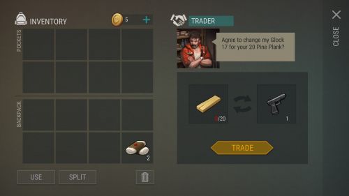 Торговец является уникальным персонажем, который появляется на карте случайным образом, если вы смогли создать радио. У него имеются несколько различных предметов для обмена. За раз можно совершить один обмен. Обычно он предлагает игрокам разнообразные виды мощного оружия.