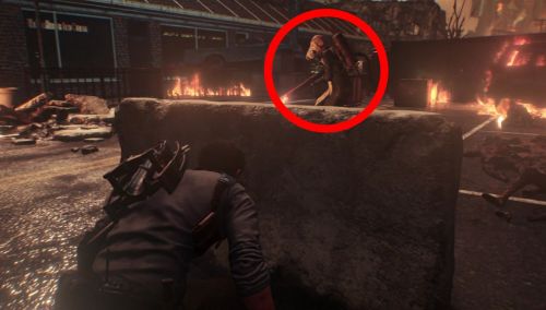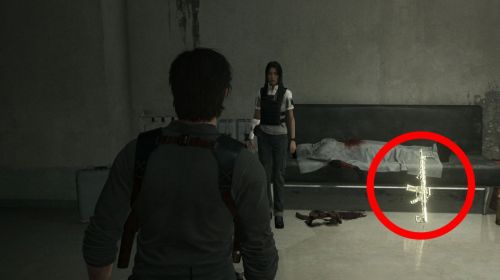 Перепрыгните через металлическое ограждение и отыщите тело неподалеку от белого грузовика. Подойдите к трупу, чтобы найти оружие. В этот момент на вас может напасть монстр с уникальными акробатическими навыками. Пушка все еще будет лежать на земле, поэтому вы можете подобрать ее и тут же атаковать чудище. Затем советуем вам обязательно модифицировать это оружие, чтобы улучшить его характеристики.
