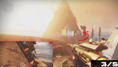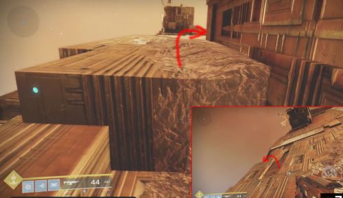 Следующий сундук находится на одной из сторон гигантской пирамиды, расположенной в южной области карты. Подойдите ко входу в сооружение, а затем идите направо. Достигнув металлических выступов, начните прыгать по ним, поднимаясь потихоньку наверх. После нескольких прыжков вы окажитесь на платформе с региональным контейнером.