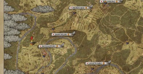 Карта находится в библиотеке монастыря Сазавы. Вы попадете сюда при прохождении сюжетного задания «Иголка в стоге сена». Можете дождаться получения квеста или ворваться в нужное помещение без приглашения.