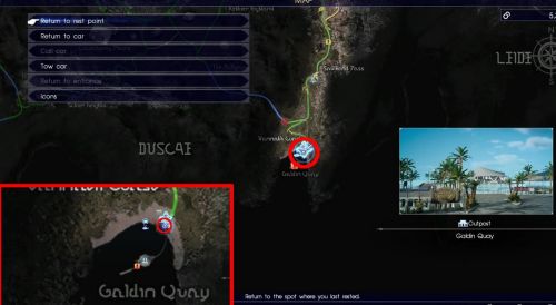 Первое специальное место для фото можно отыскать на Причале Галдин (Galdin Quay). Речь идет о небольшом аванпосте с прибрежным рестораном, расположенным на юге Лайда. Выйдя из автомобиля, пройдите немного правее променада, ведущего в ресторан. Ноктис произнесет пару слов о съемке – в этот момент нужно нажать на соответствующую клавишу, чтобы герой принял нужную позу, а Промто сделал снимок.