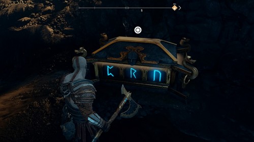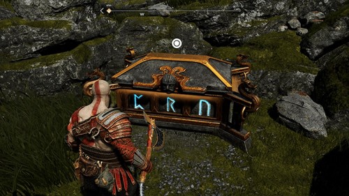 - Первая руна: Отвернитесь от сундука, и вы заметите руну на скале.