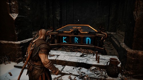 - Третья руна: Она находится на левой стороне помещения в каменном саркофаге.