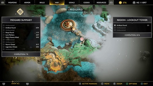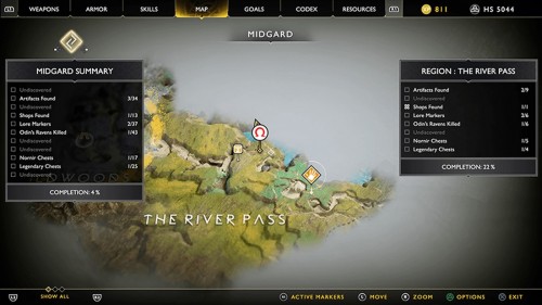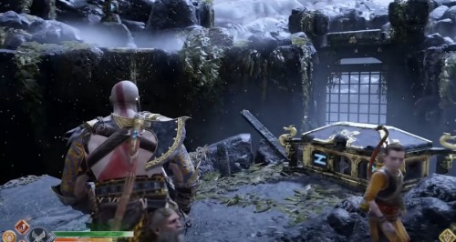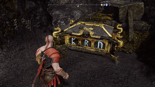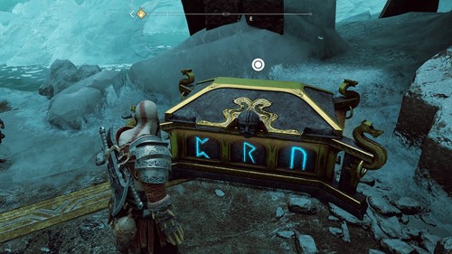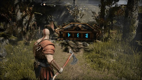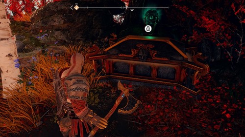 Этот сундук можно найти в пещере ведьмы после сражения с кошмарами. Оказавшись возле моста, повернитесь и посмотрите на противоположную часть локации. Идите в сторону дома ведьма. Внизу вы увидите сундук, стоящий в воде. Однако при первом посещении вы не сможете добраться до этого сундучка – вернитесь сюда, когда Атрей научится создавать мосты.