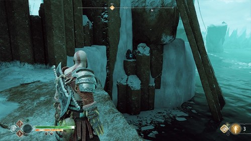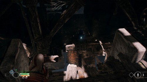 Завершив головоломку с шипами (и после того, как Атрей присоединится к вам на другой стороне), развернитесь и заберитесь на шип. Посмотрите направо и вы найдете сундук.