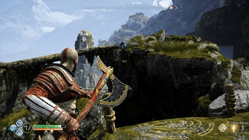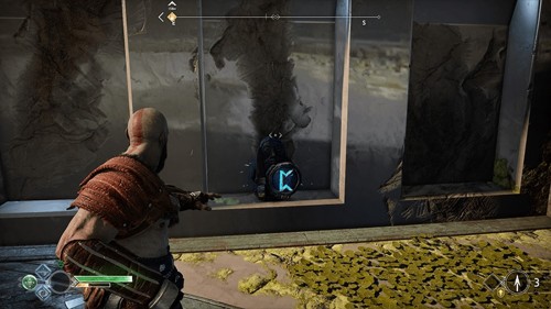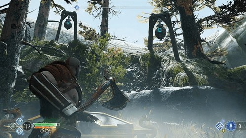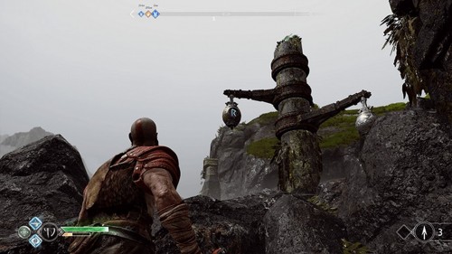 Далее поверните налево. Попросите Атрея создать мост и воспользуйтесь им. Вы найдете новый сундучок. Как и в случае с сундуком в Предгорье, вам нужно будет выровнять три столба: