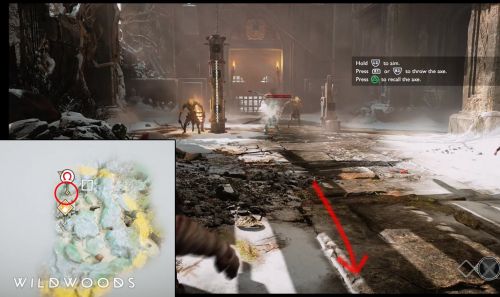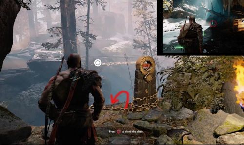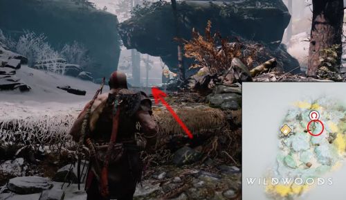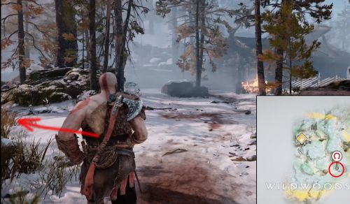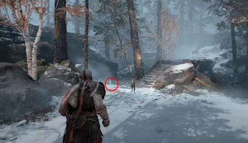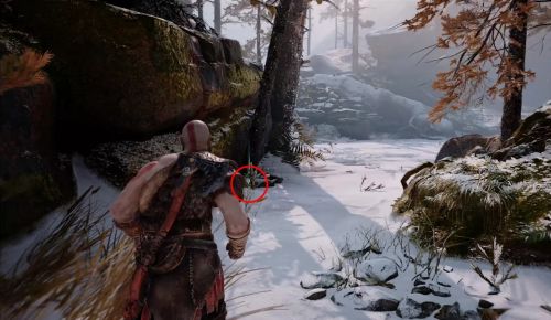 Второй предмет вы вряд ли упустите из виду. Когда вы пойдете с Атреем на охоту, идите по тропке и встаньте рядом с каменными ступеньками, находящимися рядом с домом Кратоса. Игрушка валяется с левой стороны от ступеней.