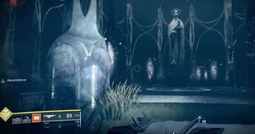 Бегите вперед по уступам, спуститесь вниз и зайдите в небольшую пещеру с порталом. Пройдите через него и поверните налево. Идите вперед, пока не окажитесь в месте под названием Слияние. Отсюда бегите в центральный зал, а потом заверните в коридор, ведущий в Закоулок посланника. Снова прошмыгните через портал и бегите вперед. В конце концов, вы доберетесь до черепа.