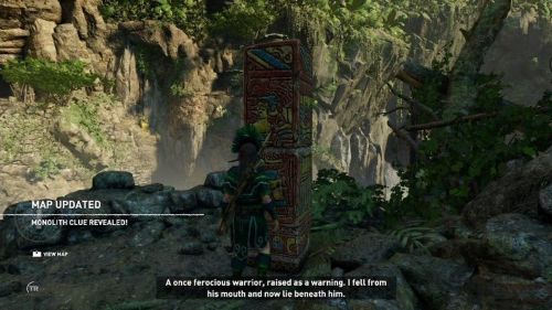 Ищите монолит в южной области региона. Если вы будете следовать сюжету, то найдете его вторым по счету. Для его чтения опять же потребуется знание диалекта Кечуа. Вы можете поболтать с персонажем в руинах, чтобы на карте отобразилось расположение изваяния.