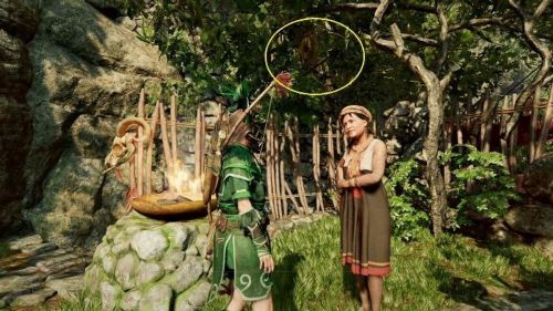 Теперь направляйтесь в центральную часть Пайтити. Отыщите поклоняющихся людей. Рядом с ними и находится монолит. Осмотрите его, чтобы получить подсказку, в которой будут представлены сведения о золотых птицах (украшения, подвешенные на ветках). Много таких птичек развешены возле храма. Идите влево от монолита, поднимитесь по лесенке и отыщите там женщину. Рядом с ней стоит дерево, под которым и зарыт клад.
