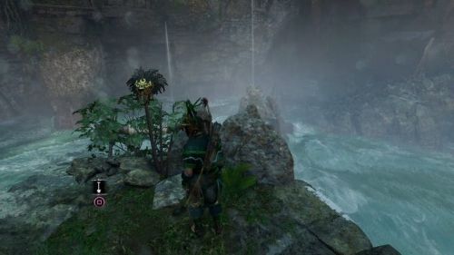 Первый монолит в этой локации можно найти в ее северной области. Первым делом проплывите через водоем и доберитесь до двух водопадов. Рядом с ними и находится статуя. Исследуйте его надписи. Для обнаружения сокровища погрузитесь в воду слева от монолита. Доплывите до самого дна для появления действия, связанного с поднятием клада. Как только вы поднимите его, вам придется пройти небольшое испытание, которое может привести к мгновенной смерти.
