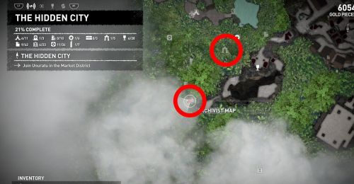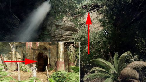 Пройдите мимо небольшого водопада, а потом поднимитесь на вершину скалы, чтобы отыскать вход в склеп. Войдя внутрь, вы увидите открытый проход, через который нужно пройти. Оказавшись в новом помещении, откройте саркофаг, а потом двигайтесь вперед. Спуститесь вниз и начните искать дверной проем, ведущий в маленькую комнату с пьедесталом, на котором и лежит карта.