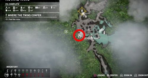 Когда вы пройдете через руины, то обязательно заметите голубой рисунок. Взгляните на правый угол – там с правой стороны будет находиться небольшое отверстие, через которое можно проползти. Именно тут вы и отыщите карту архивариуса.