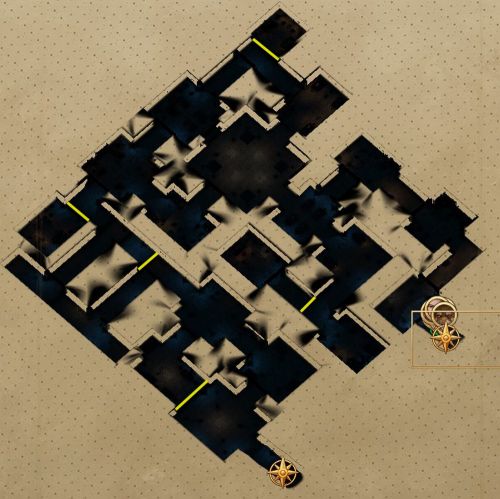 В этой локации имеются несколько потайных помещений, проходы к которым отмечены желтыми полосками на карте ниже.