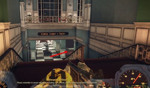 Робота-продавца Уоллеса отыскать немного трудновато. Он находится в одном из зданий, об котором говорится, что оно является торговой заставой и расположено на восточной стороне Харперс-Ферри, рядом с разбитым поездом.