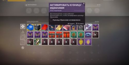 Обнаружив новый предмет в районе кузницы, возвратитесь в Башню и взаимодействуйте с Адой-1. Она попросит вас починить его, собрав нужные компоненты. Для этого вам предстоит пройти героические версии трех открытых мероприятий, а именно:
