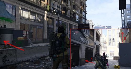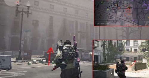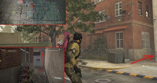 В этой области есть два сундука, стоящих практически рядом друг с другом. Идите на северо-восток зоны, к углу H St. NW и 9th St NW. Вы увидите вход с зеленой краской наверху. Зайдите внутрь и идите по коридору.