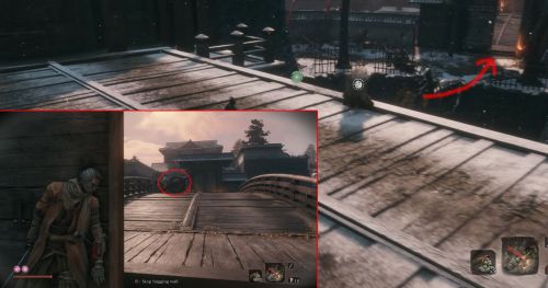 Вы найдете петарду у продавца – вам нужно будет заплатить ему 500 сэн, чтобы купить ее. Для нахождения торгаша, переместитесь к идолу «Стена на Окраинах – Путь к воротам» и пройдите через здание рядом с ним. Идите сквозь двор и поднимитесь на карниз над воротами. Если вы посмотрите налево, то увидите торговую палатку на вершине горы. Вы можете взобраться на нее, используя свой крюк для захвата, но вам придется перейти на другую сторону, чтобы найти точки притяжения.