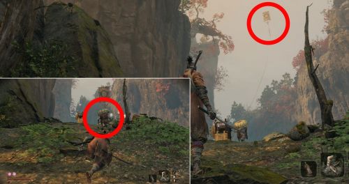 Теперь бегите к идолу Резчика «Храм Сэмпо, гора Конго», выберитесь наружу и тут же сверните вправо. Начните спуск и попадите под разрушенный мостик. Тут вы заметите воздушного змея, возле которого бегает карлик. Подойдите к малышу сзади, чтобы он вас не заметил, и ударьте его смертельной атакой, не забыв потом во второй раз нажать на клавишу удара.