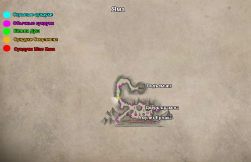 Сундук Скорпиона расположен в Нижней яме (-8914, -3352) неподалеку от тела Ермака. Череп находится на дальнем восточном краю области – он свисает с последнего большого шпиля.