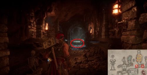 Сундучок ищите в Залах пыток (3496, 3497) в конце первого коридора. Череп расположен в конце второго коридора позади множества изогнутых решеток.