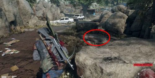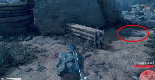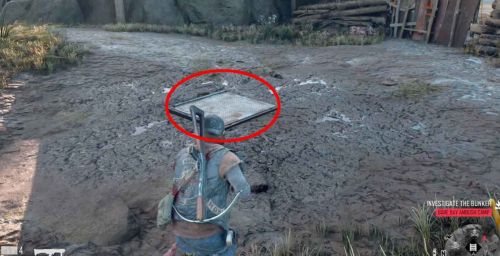 Последний люк в бункер можно найти на грязевом участке неподалеку от входа в лагерь.