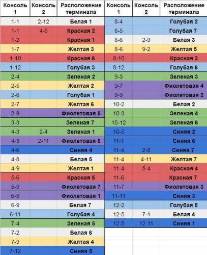 Подойдите к Консоли 1. Вам нужно будет передать полученную информацию вашему расшифровщику таблиц. Всегда берите цифры слева направо. Например, значение может быть таким: «2-6». После этого будьте готовы в случае чего помочь бегуну. Затем расшифровщик выясняет, что означает этот код (нужно идти в голубую комнату и активировать терминал 1). Далее он сообщает бегуну, в какого цвета помещение бежать, и какой терминал заблокировать. Игрок, стоящий возле Консоли 1, должен при возможности оставаться на своем месте. Вам нужно будет проделать этот процесс 49 раз.