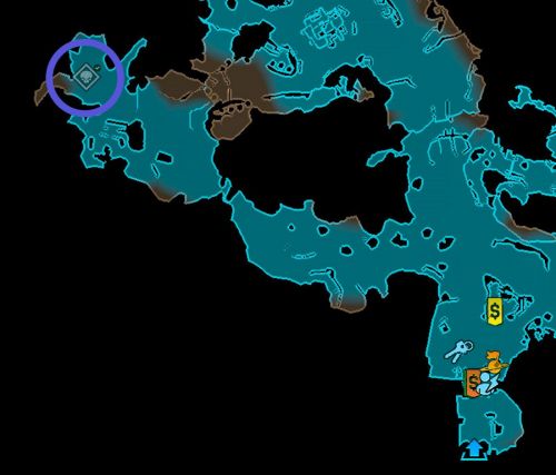 Эта область для фарминга была обнаружена игроками сравнительно недавно. Благодаря ей можно собирать эридий намного быстрее, чем в методах, описанных чуть ниже. Однако он требует, наличия персонажа 25-35 уровня, так как иначе вы не сможете разблокировать нужную локацию. Открыв нужный район, отправьтесь к участку, обозначенному кругом на скриншоте ниже.