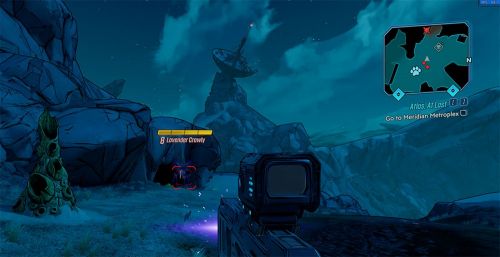 Оттуда отправляйтесь на станцию «Поймать попутку» (Catch-a-Ride) и возьмите автомобиль. Начните ехать в верхнюю часть карты, поворачивая немного на запад, пока не доедете до северо-западного угла. Вы узнаете, что находитесь в правильном месте, когда на экране появится надпись «Долина Варкидов» (Varkid Valley). Бегите вниз в эту область, и вы увидите ползуна (Lavender Crawly), выходящего из пещеры.