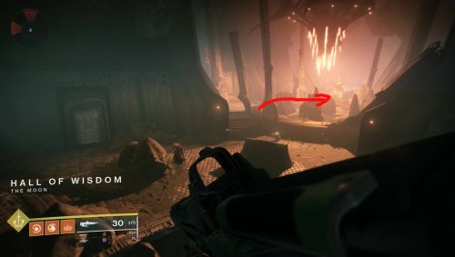 В описании квеста упоминается, что этот предмет можно найти в Зале мудрости. Речь идет о подземной зоне, находящейся под Адской пастью. Идите к восточной части Линии лучника – там вы найдете большую светящуюся дверь, ведущую в катакомбы под поверхностью Луны.