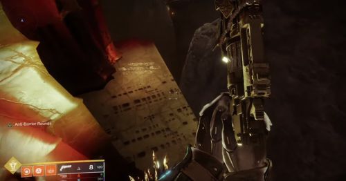 Отправляйтесь в затерянный сектор в Адской пасти. Пройдите через него и выйдите, воспользовавшись каменной платформой возле сундука. На ней есть загадка. Чтобы решить эту головоломку, сопоставьте все девять рун со знаком, показанным в верхней части сетки. Вы можете изменять символы, стреляя в них. Как только вы сопоставите руны, появится сундук с фрагментом пути.