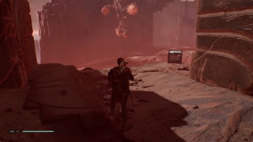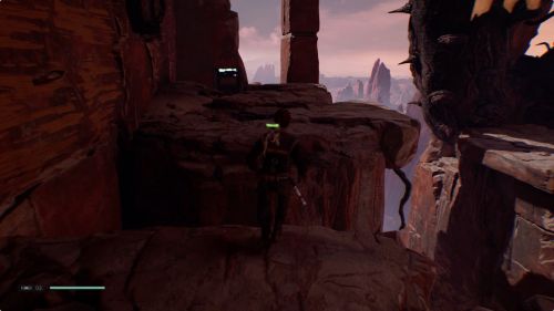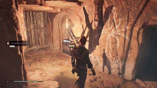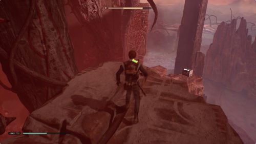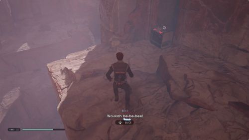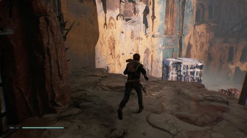 Для нахождения этого тайника вам предстоит начать с Верхних скованных скал. Пройдите по узкой тропинке, выйдя из «Богомола», и вскоре вы пройдите мимо закрытой двери, расположенной слева. Поверните влево и отыщите коробку, которую можно передвинуть с помощью Силы.