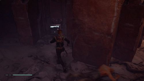 Продолжайте идти вперед, пройдя мимо круга медитации, и разберитесь с найдеком. Нужный вам объект будет находиться на краю выступа. В нем лежит эмиттер светового меча.