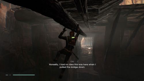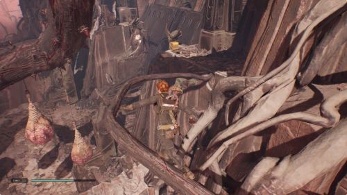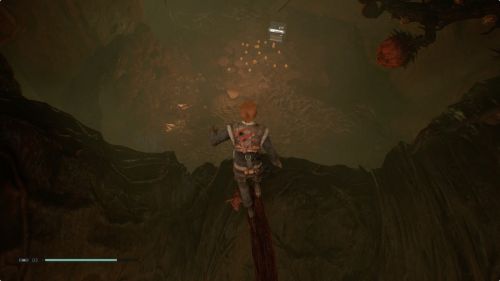 Продолжайте двигаться по тоннелю, находящемуся с правой стороны от верстака. Поднимитесь на стену, дойдя до конца пути, а потом отыщите тайник на уступе, находящемся снаружи. В нем можно найти Эссенцию здоровья.