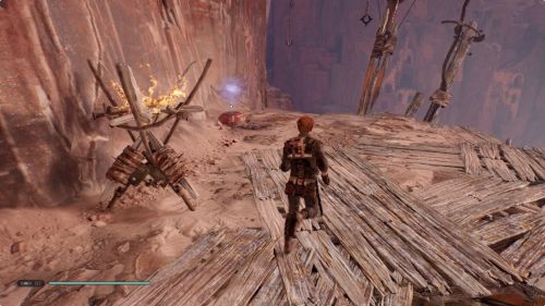 Пройдя через Бастион братьев, вы скатитесь прямиком в новую область. Взобравшись наверх, отыщите площадку подъемника, расположенную неподалеку от выхода. Спуститесь на нем вниз для открытия короткого маршрута и нахождения сундука с муфтой светового меча.